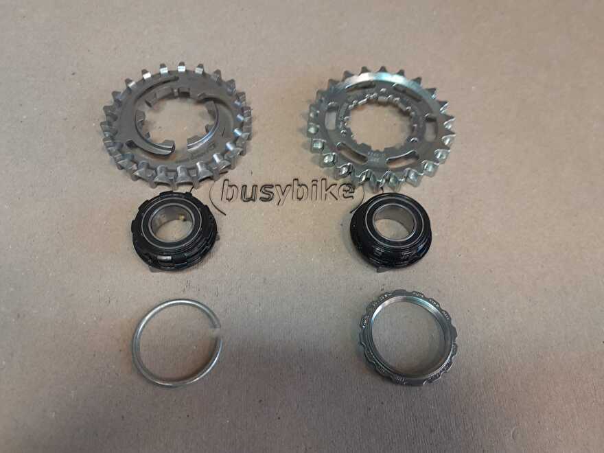Hieronder staan beide tandwielen en adapters afgebeeld.
